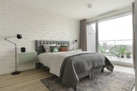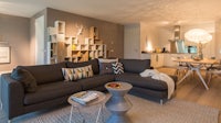 These interiors include wall painting, flooring, window decoration, and all the way down to cutlery, linen, towels, and plants.